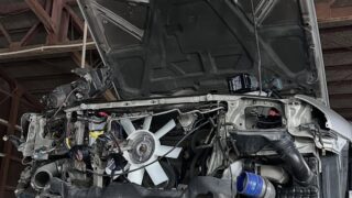 上越市の整備工場に日産スカイライン入庫。名車・スポーツカーの整備・修理もお任せください。丁寧な点検で愛車を長く安心して乗れるようサポートします。